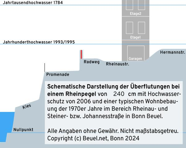 Hier gibt es noch mehr: > Pegelforschung und Informationen zu Hochwasser, dem Hochwasserschutz in Beuel und der Pegelmessung