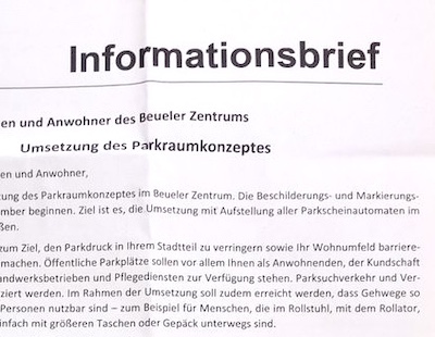 Informationsschreiben der Stadt zum Parkraumkonzept Beuel