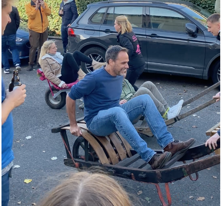 Eines der Highlights war das traditionelle Schürreskarrenrennen. Schürreskarren sind Schubkarren nach historischem Vorbild aus Holz. Beim Rennen sitzt jeweils eine Person auf der Karre während eine zweite schiebt. Unter großem Jubel und zur Freude der zahlreichen Gäste ging es an den Start. Als diesjährige Sieger ging das Team der designierten LiKüRa-Prinzessin Karoline I. mit ihren Paginnen Svenja und Janine hervor. Ein gutes Omen für die kommenden Session: Teamgeist und Motivation bestens!