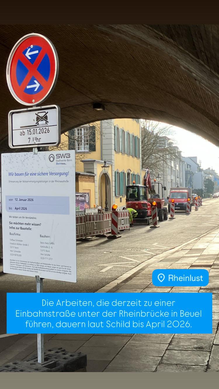 Update 26.01.2026: auf unsere Rückfrage teilen die Stadtwerke Bonn GmbH mit, dass während der gesamten Bauphase bis in den April 2026 die Einbahnstraßenregelung aufrecht erhalten werden wird.