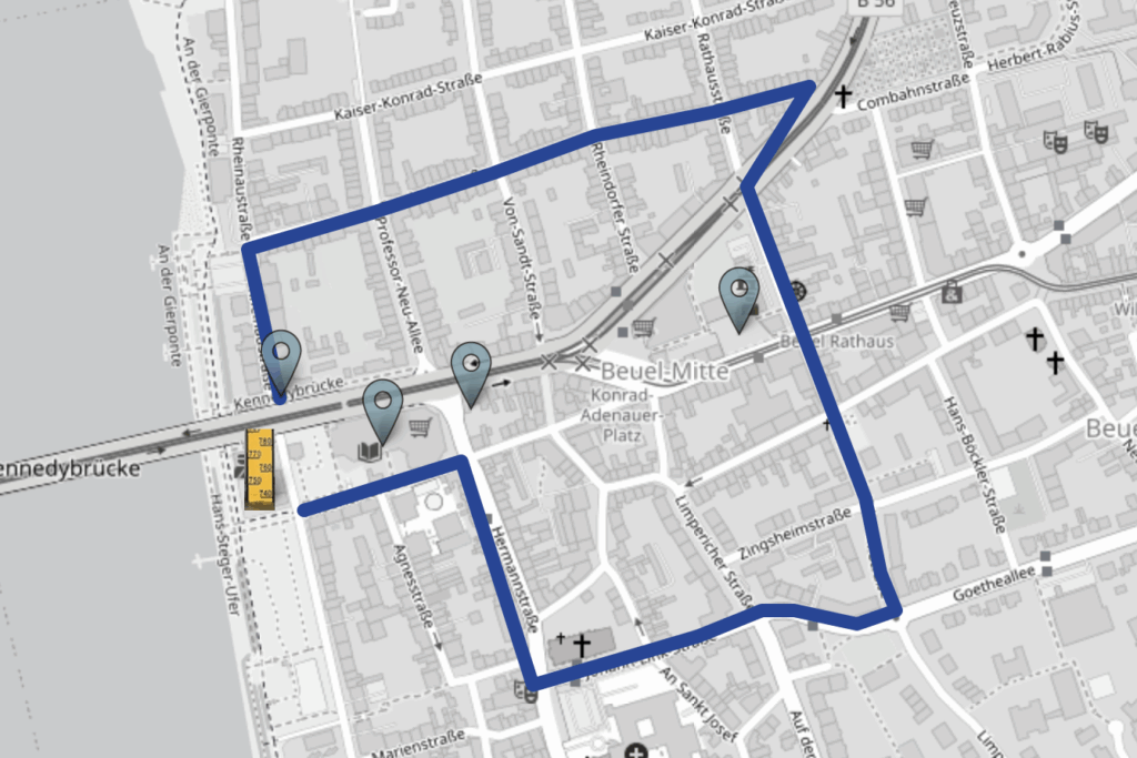 Dies führt zu erheblichen Einschränkungen für Anreisende zum Brückenforum aus Richtung Sankt Augustin. Sie müssen beachten, dass eine Zufahrt über Combahnstraße und dann Rheinaustraße zum Parkhaus nicht möglich ist. Da weder an der Professor-Neu-Allee, der Von-Sandt-Straße, der Rheindorfer Straße noch der Rathausstraße eine Querung der B56 möglich ist, erscheint der sinnvollste Weg zurück über die Combahnstraße, dann rechts auf die B56 um anschließend sofort links ab zu biegen auf die Rathausstraße. In deren Verlängerung über die Friedrich-Friesen-Straße, Goetheallee, Johann-Link-Straße, gelangt man auf die Hermannstraße um schlussendlich auf die Friedrich-Breuer-Straße einbiegen zu können.